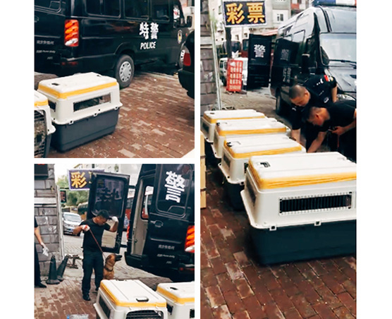 這兩只寶寶是(中國——菲律賓),狗狗狀態非常好,帶他們上完廁所,準備隨機進入有氧艙一起起飛。